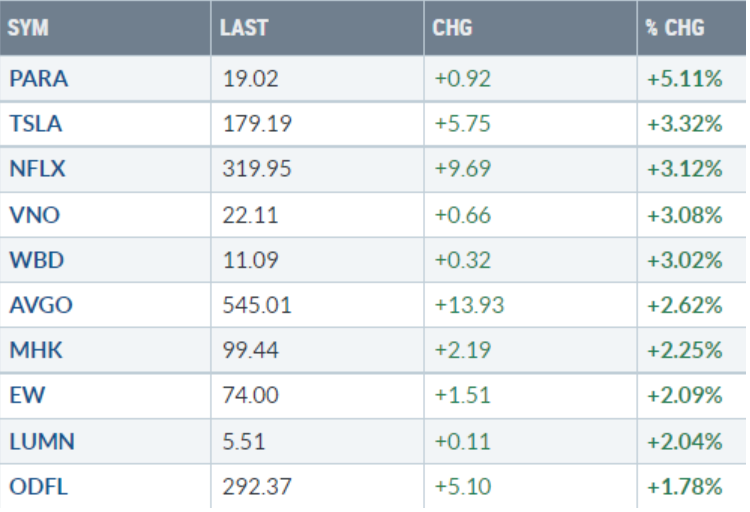 Analisi azioni: Top 10% Market Movers S&P500 09/12/2022