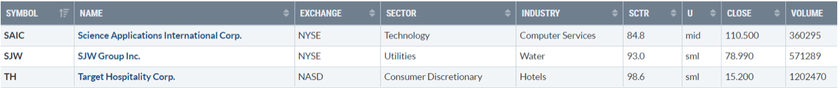 Di seguito i titoli che hanno creato un nuovo massimo a 52 settimane, e stanno sovraperformando l’indice di riferimento S&P500.