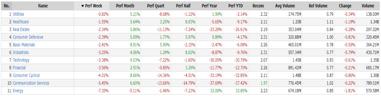 ⭕Weekly Performance Settori & Top10 Industrie 10-12-2022