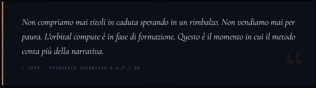 Questa newsletter è ricerca pubblica. Ma se stai cercando di tradurre questa analisi in decisioni operative, in livelli concreti, in una gestione del rischio strutturata, tutto ciò avviene all’interno del nostro modello R.A.P.T.OR e del Portafoglio Théma.
