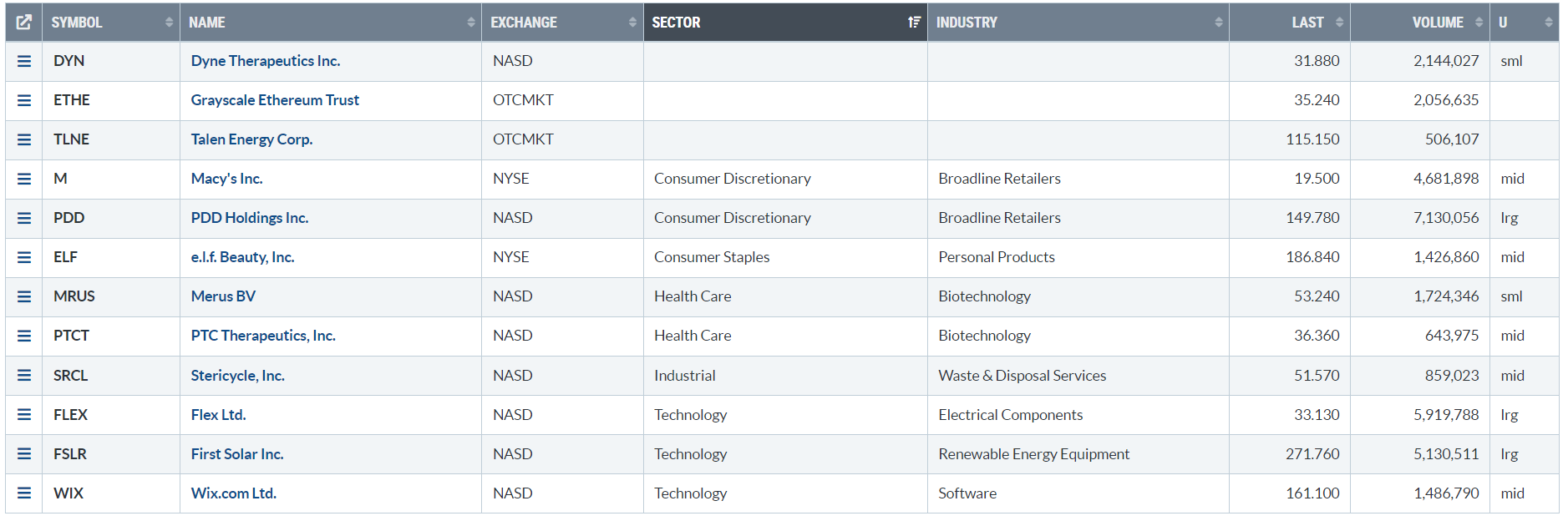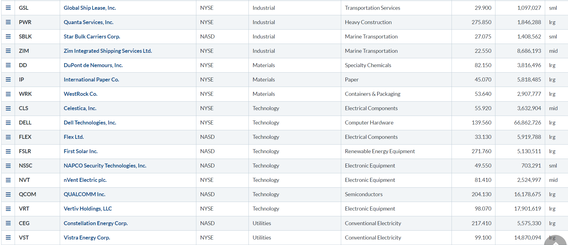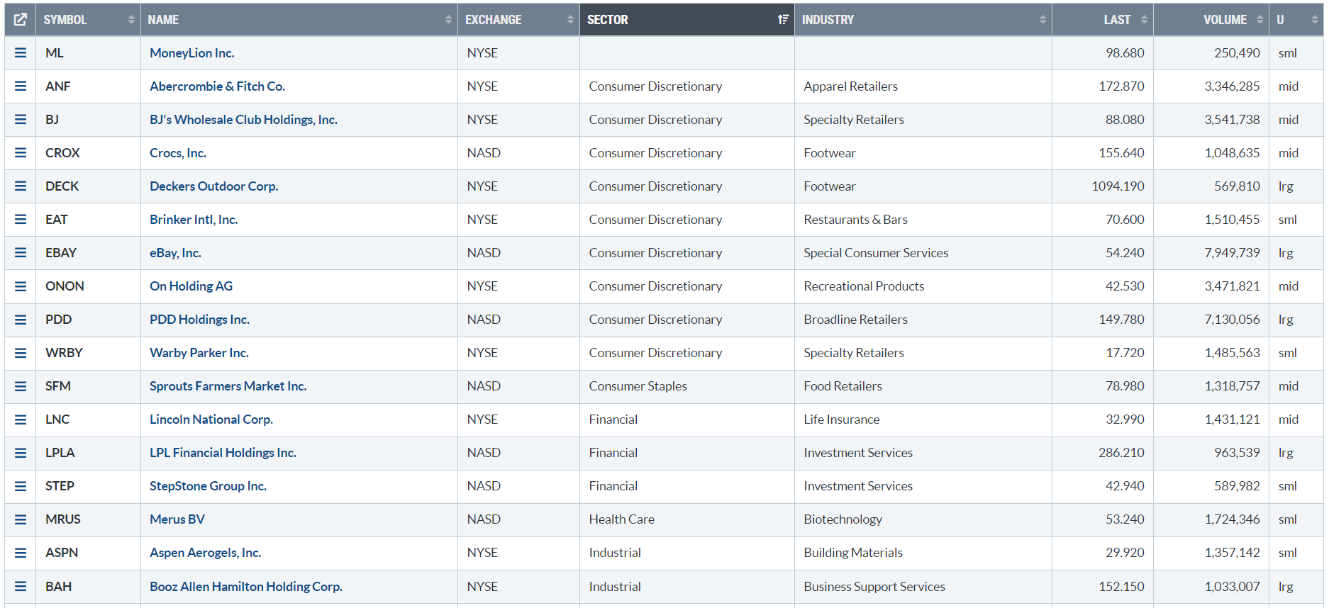 Di seguito i titoli che hanno creato un nuovo massimo a 52 settimane, e stanno sovraperformando l’indice di riferimento S&P500.