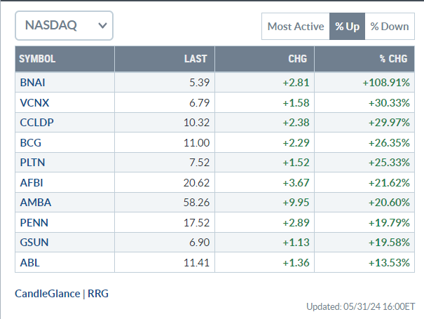 I titoli in rialzo hanno superato quelli in rosso di quasi 4 a 1 sul NYSE e di quasi 2 a 1 sul Nasdaq. Il volume è aumentato su entrambe le borse.