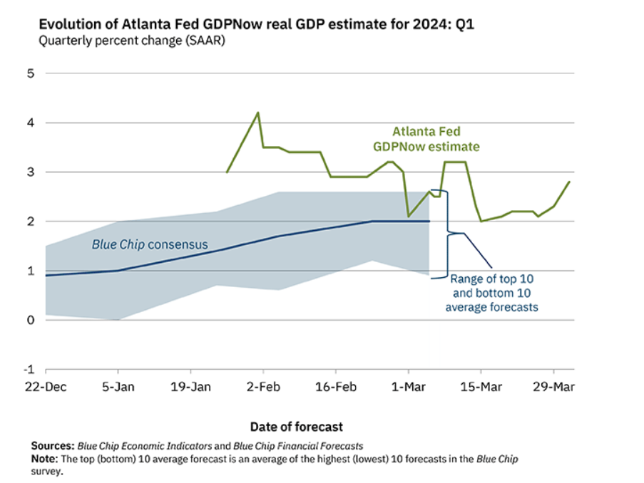 La Federal Reserve Bank di Atlanta ha migliorato le sue previsioni di crescita economica per il primo trimestre lunedì, solo un paio di giorni dopo la sua ultima previsione.