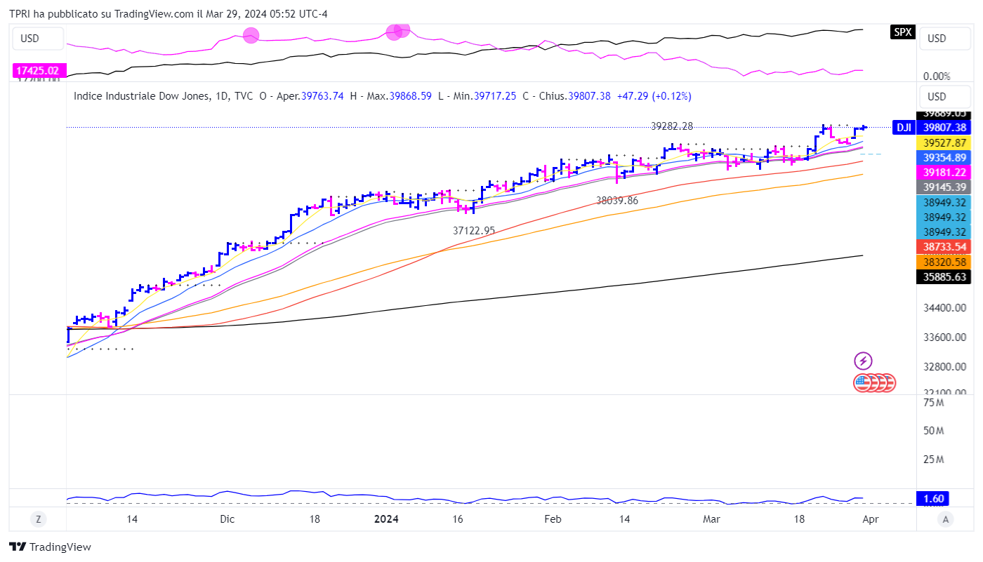 Il Dow Jones è salito dello 0,12% giovedì, segnando un nuovo record di chiusura. L’S&P500 ha guadagnato lo 0,11% toccando un nuovo massimo intraday, mentre il Nasdaq ha perso lo 0,12%, vicino comunque ai recenti massimi.