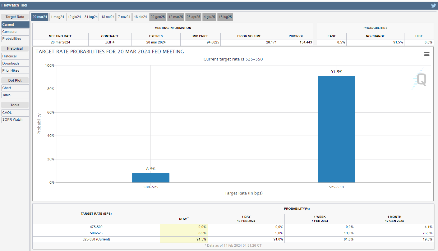 Il CPI headline è salito dello 0,3% a gennaio, al di sopra delle aspettative per un aumento dello 0,2%. Il tasso di inflazione YoY è sceso al 3,1% dal 3,4% di dicembre, sopra le previsioni del 3%.