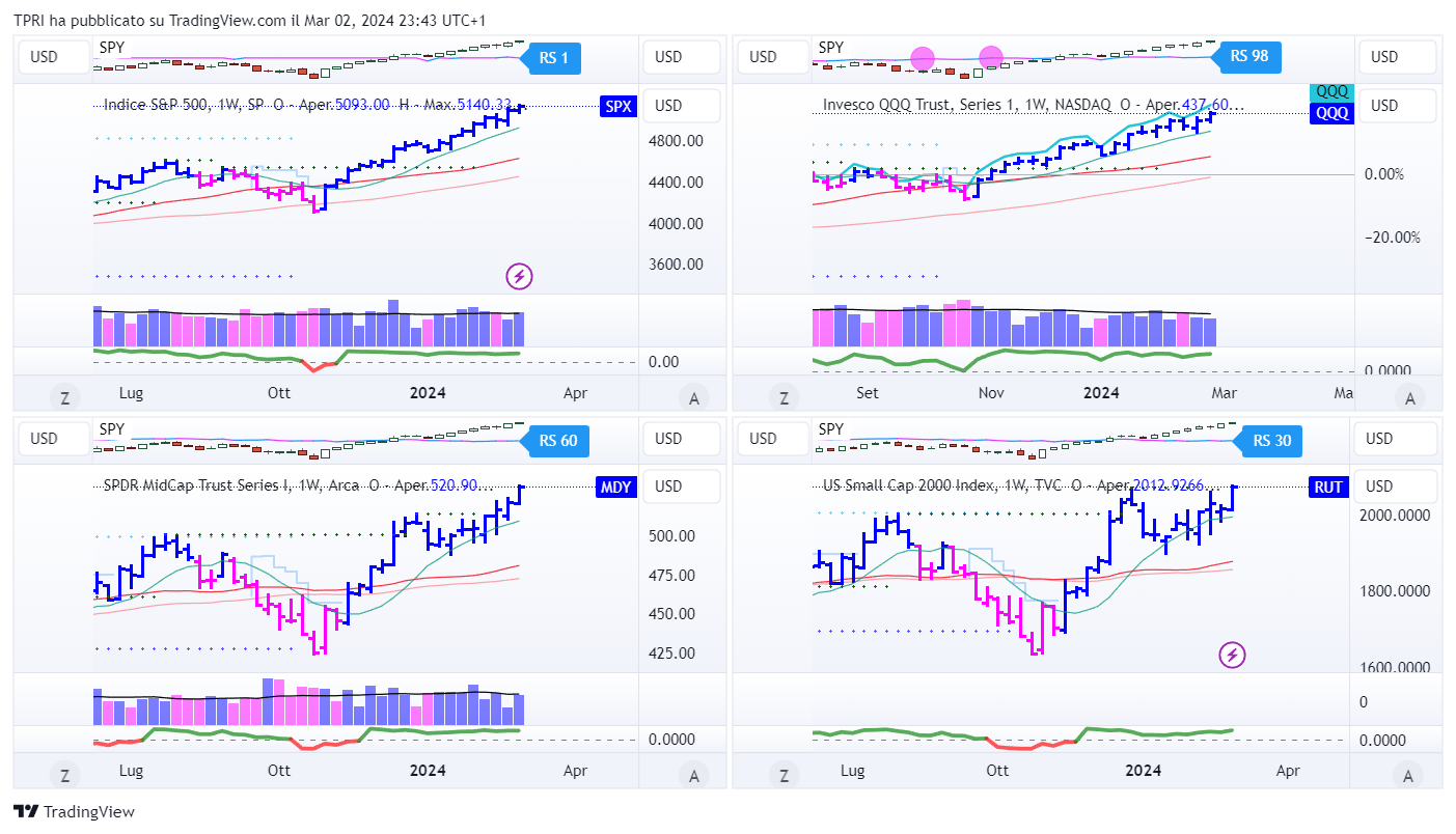 Partecipazione anche da parte delle small-cap, con il Russell2000 che ha trovato il rimbalzo appena sopra i massimi a 52W.