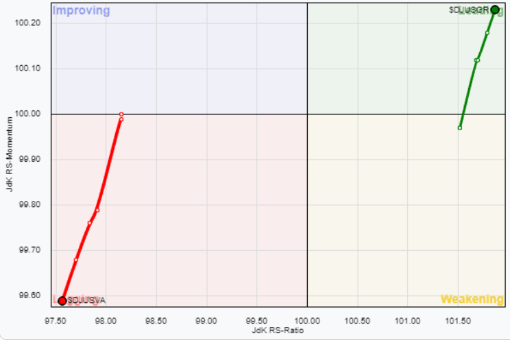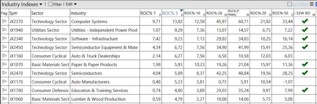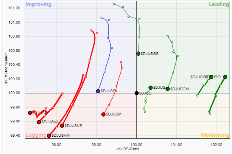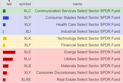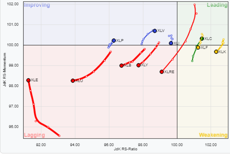 – Communication Services bottom sector con un RoC_5,D pari a -1,40%