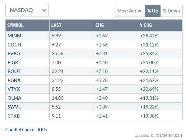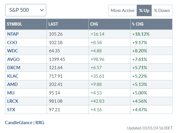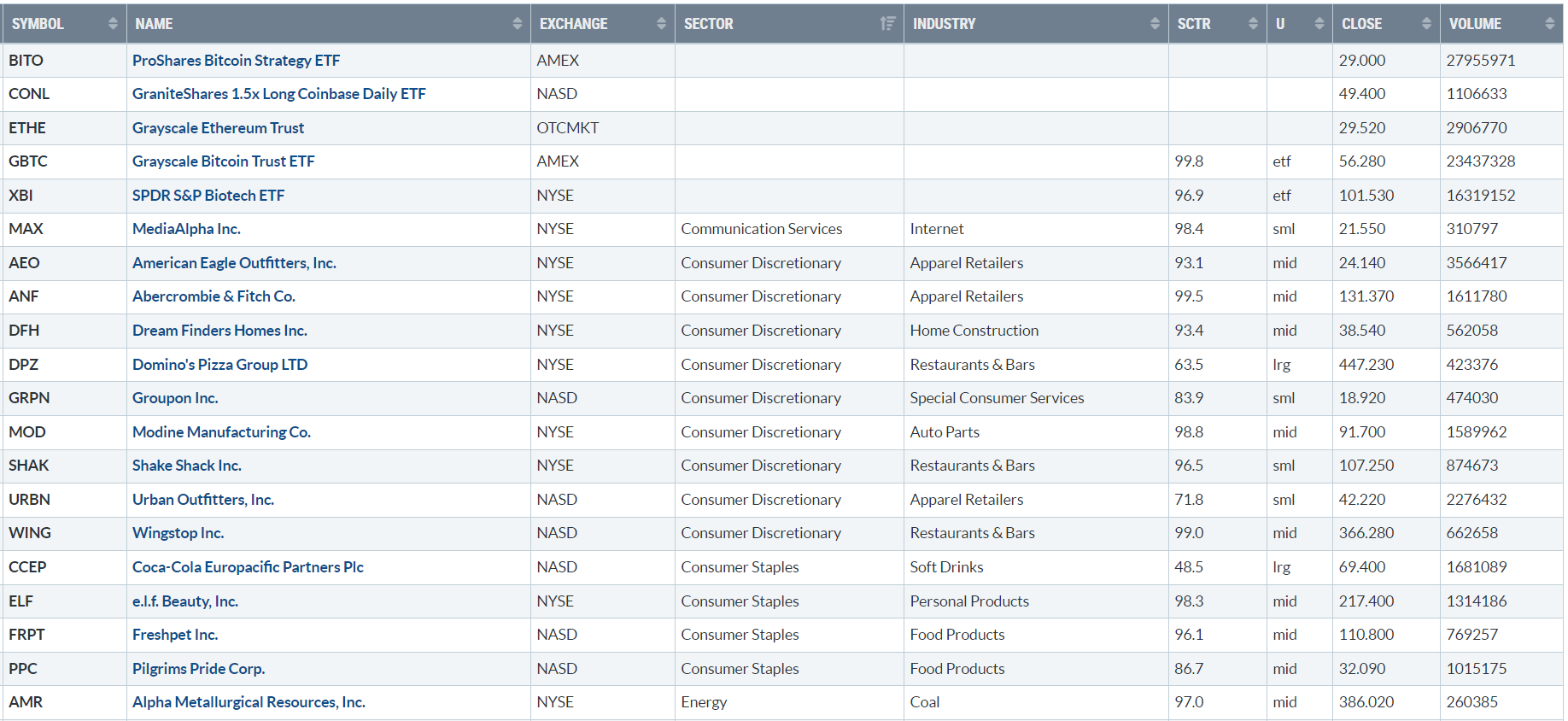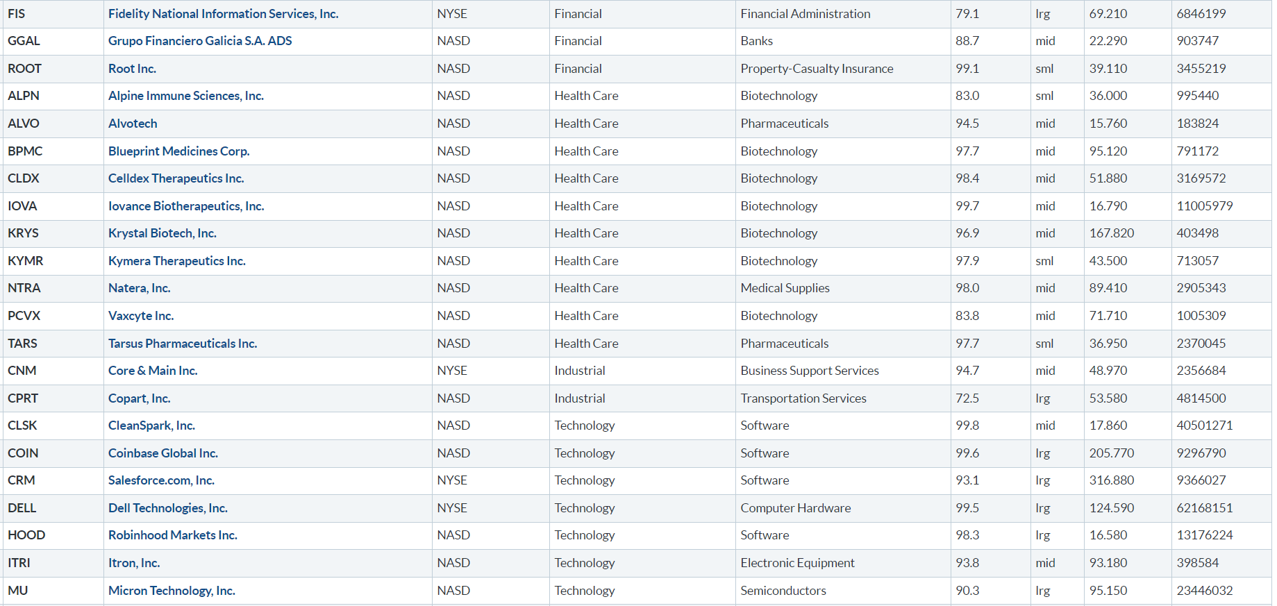 Di seguito i titoli che hanno creato un nuovo massimo a 52 settimane, e stanno sovraperformando l’indice di riferimento S&P500.