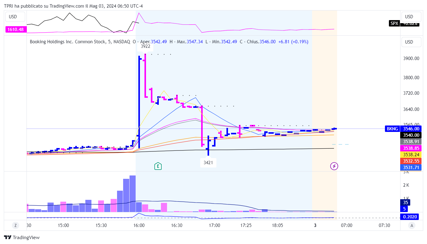 Booking Holdings ha superato le previsioni sugli utili, mentre anche il fatturato è stato superiore alle stime. Il titolo BKNG è salito leggermente verso laSMA50D.