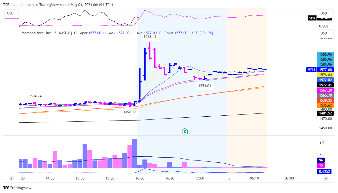 MercadoLibre ha superato le previsioni sugli EPS. MELI è salito nelle contrattazioni notturne, dopo che ieri aveva recuperato la SMA200D e superato la SMA50D ancora in discesa.