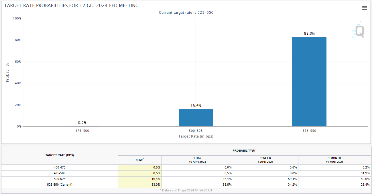 Giugno e luglio non sono più visti come le date probabili per un primo taglio dei tassi da parte della Fed, a favore invece di settembre. Una minoranza degli investitori comincia a considerare la possibilità di vedere i tassi immutati per tutto il 2024.