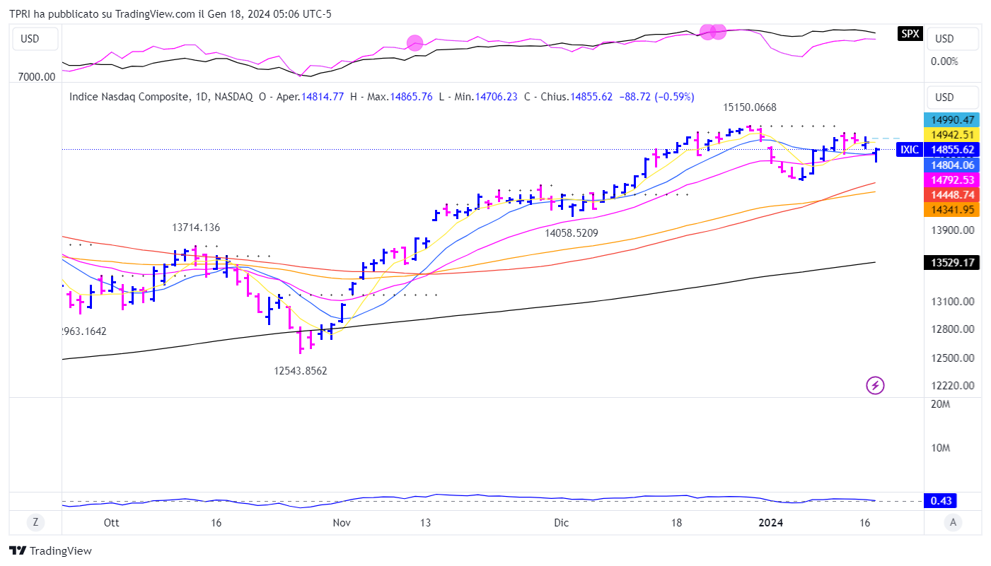 Una pausa del rally sarebbe normale dopo i forti guadagni di fine 2023. I livelli attuali e quelli dei minimi di inizio mese saranno importanti per capire l’entità di un ritracciamento più profondo oppure una fase laterale prolungata.