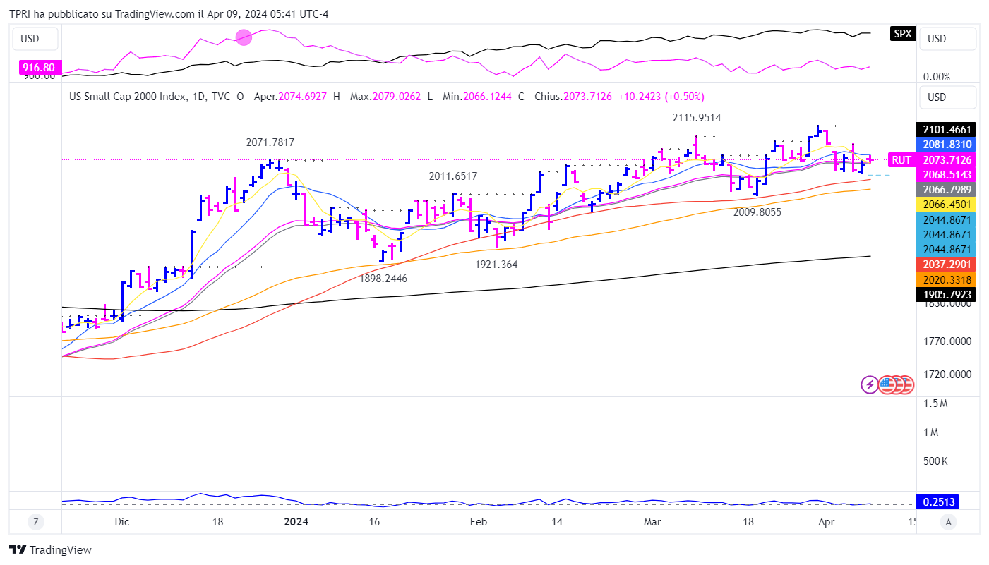 Il Russell2000 intanto non è riuscito ancora a rompere con decisione l’area dei 2100 punti.