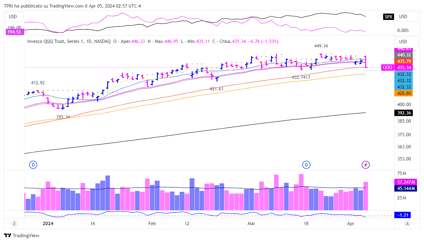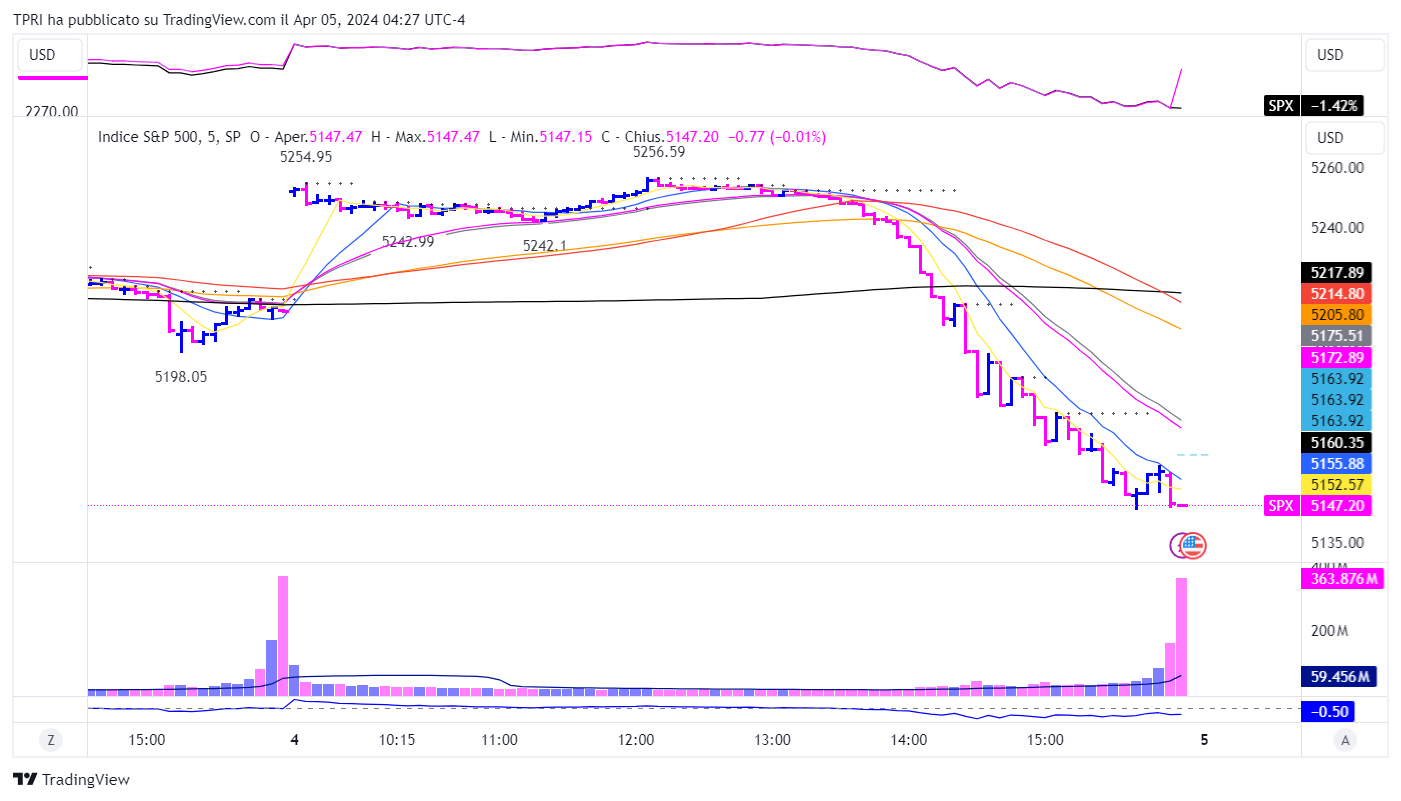 Battute a parte, è impossibile sapere su chi cade maggiore responsabilità. Qualcuno ha indicato i commenti del presidente della Fed di Minneapolis (non votante FOMC), che ha aperto all’ipotesi di vedere i tassi invariati qualora i progressi contro l’inflazione dovessero rallentare. Altri hanno indicato l’aumento delle tensioni geopolitiche in Medio Oriente legate alla potenziale rappresaglia dell’Iran contro Israele e i commenti di Netanyahu come il principale fattore che ha guidato il sell-off del pomeriggio.