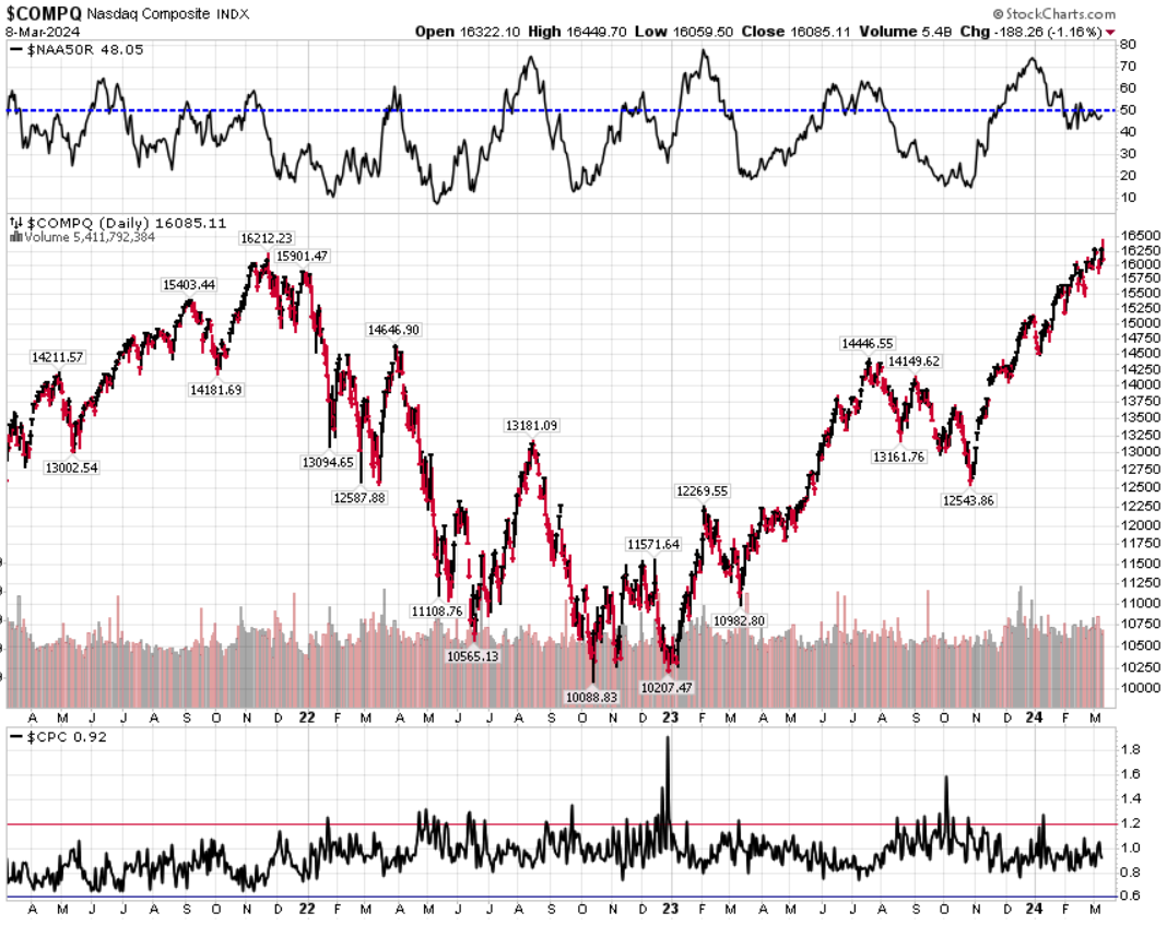 Venerdì il mercato ha visto evaporare i guadagni iniziali, nonostante il Nasdaq abbia toccato un massimo storico. Il suo guadagno nel 2024 è del 7,2%. I volumi dell’ultima giornata segnano un’altra giornata di distribuzione per l’indice.