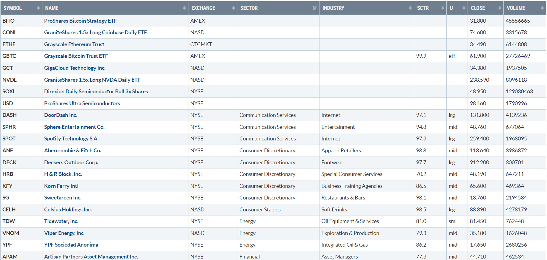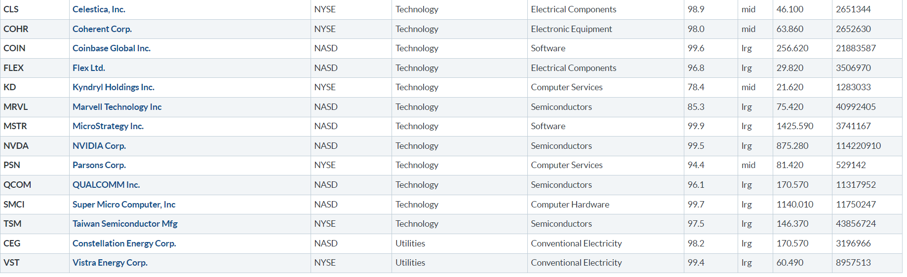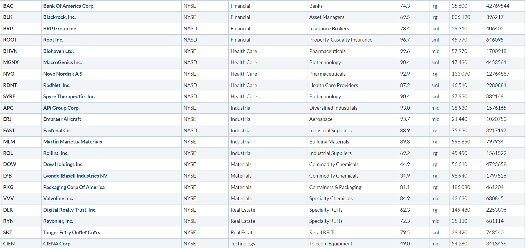Di seguito i titoli che hanno creato un nuovo massimo a 52 settimane, e stanno sovraperformando l’indice di riferimento S&P500.