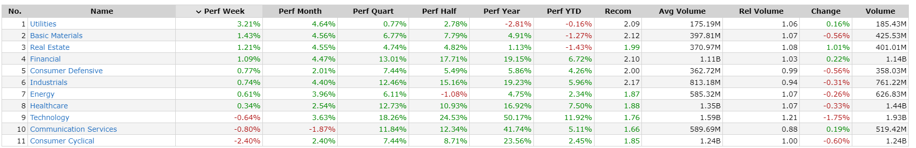 – Utilities top sector con un RoC_5,D del +3,21%