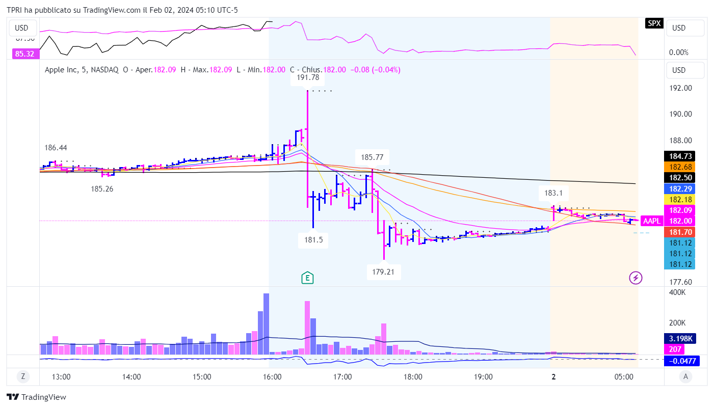 Nonostante gli EPS in crescita del 16%, il mercato ha reagito negativamente alla trimestrale di Apple a causa delle vendite in Cina sotto le attese. Anche la guidance per il periodo corrente è stata negativa.