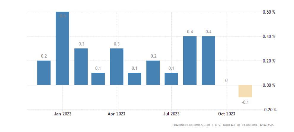 L’indice PCE generale ha segnato un -0,1% il mese scorso secondo i dati diffusi oggi. Si tratta del primo decremento dal 2020.