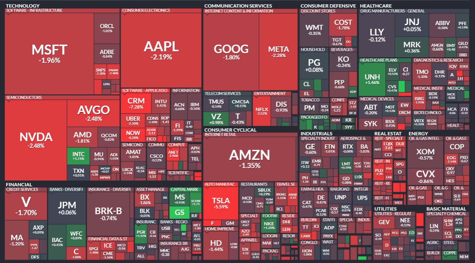 Profondo rosso per gli indici, dopo l’accelerazione delle vendite nella seconda parte della sessione di lunedì. S&P500 e Nasdaq hanno rotto livelli chiave, mentre i rendimenti dei titoli di Stato