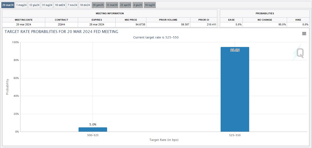 Il messaggio del chairman della Fed non si è discostato molto da quello del 31 gennaio, quando Powell ha escluso un taglio dei tassi a marzo, sottolineando come l’economia sia in buona forma.