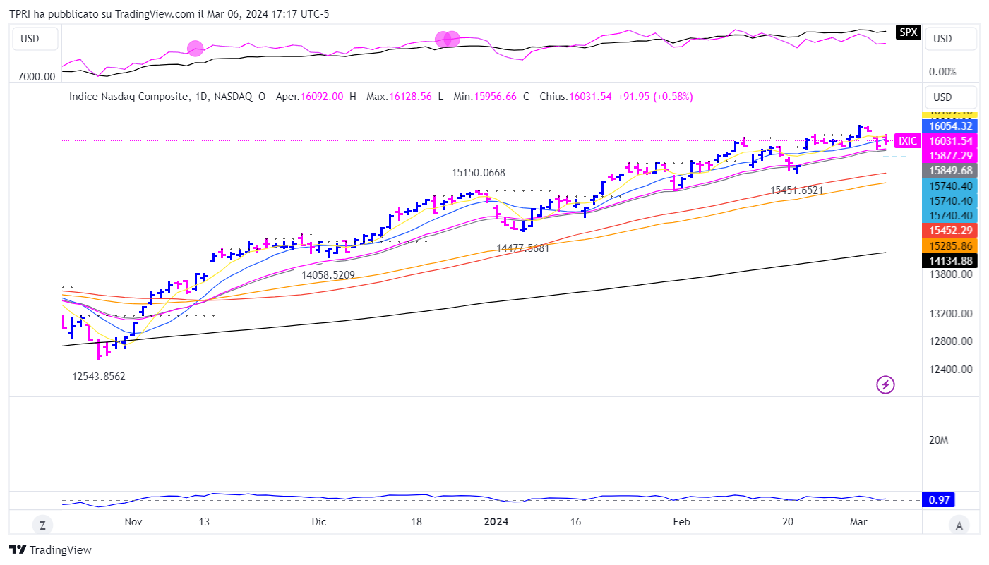 Il Nasdaq sta mantenendo livello di 16000 punti, ma c’è una divergenza fra i titoli legati al tema chip e server di intelligenza artificiale che continuano a crescere, e molte altre azioni tecnologiche che hanno testato o rotto supporti chiave di recente.
