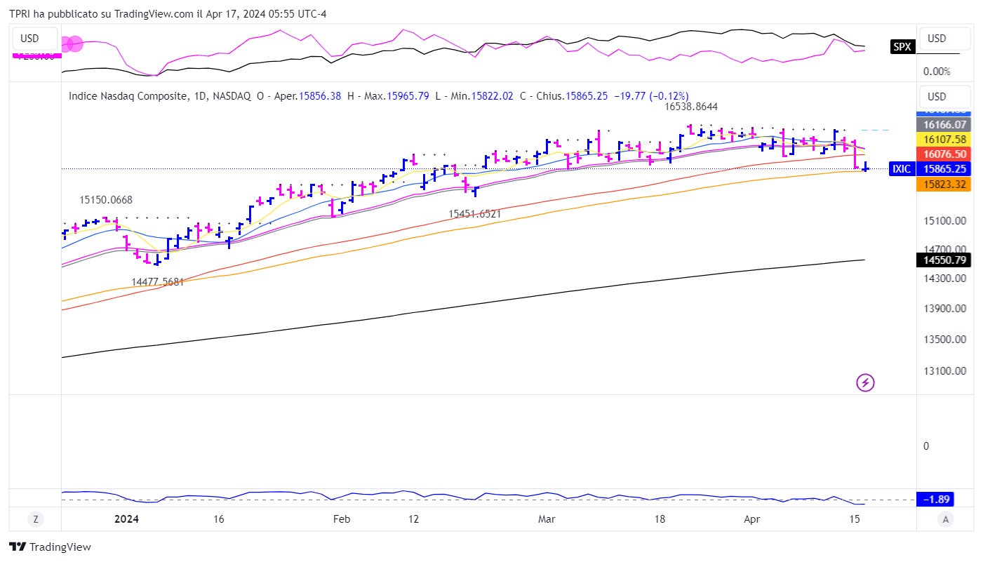 Il rally è sotto forte pressione, con gli indici principali al di sotto delle loro SMA50D e molti leader in difficoltà. I rendimenti dei Treasury in rialzo non stanno aiutando.