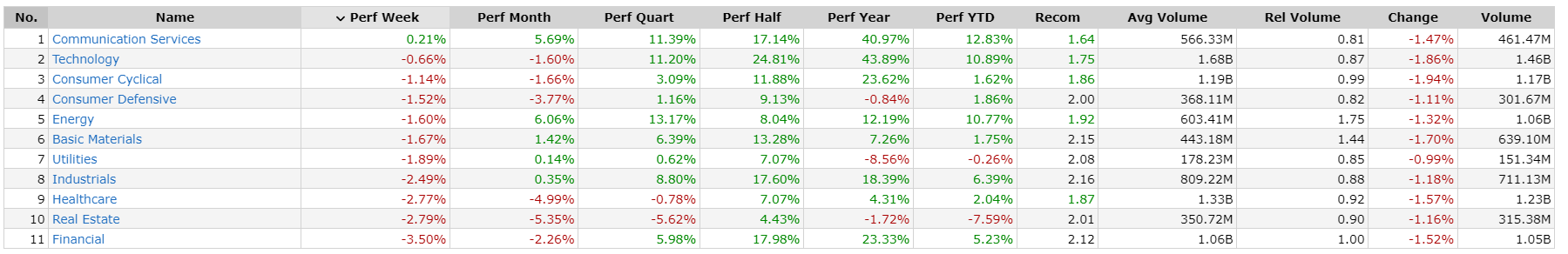 – Communication Services top sector con un RoC_5,D del +0,21%