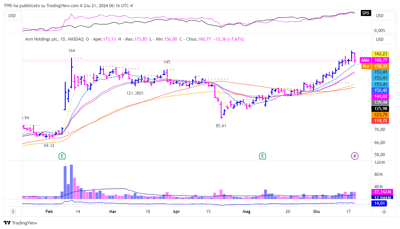 ARM è crollata del 7,7% a $160,77 avvicinandosi alla SMA10D.