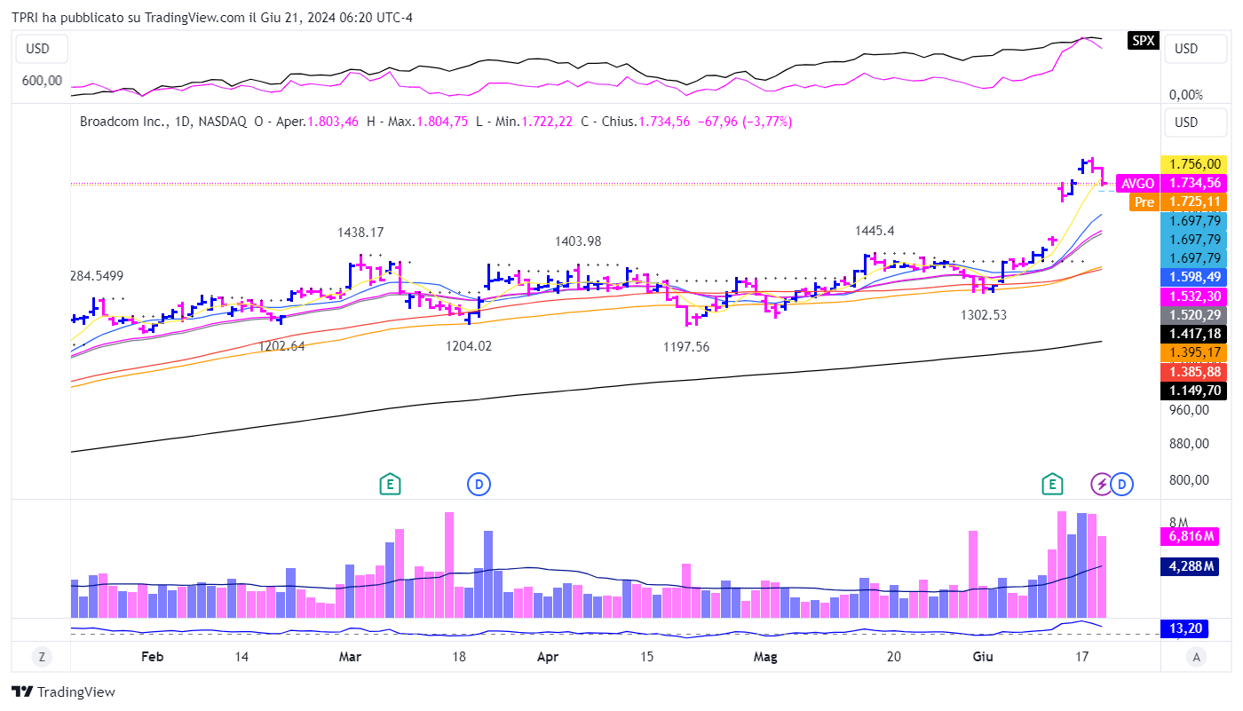 Broadcom ha perso il 3,8% a $1.734,57, dopo che la giornata di martedì aveva già stoppato il rally post-trimestrale.