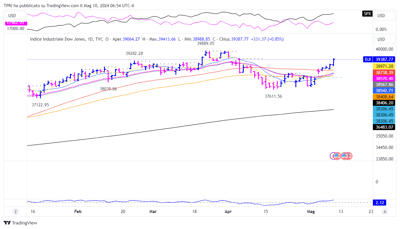Il Dow Jones dopo la sua settima sinfonia si sta avvicinando ai massimi storici. S&P 500, Nasdaq e Russell2000 rimangono sopra le loro SMA50D.