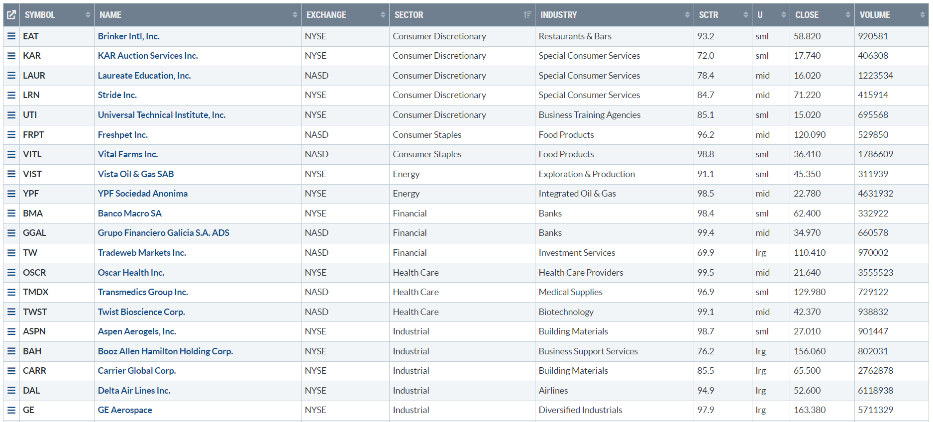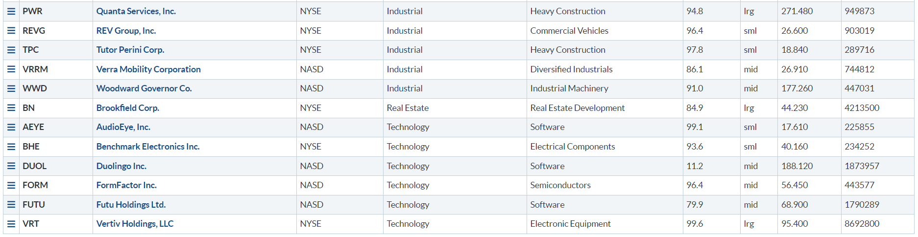 Di seguito i titoli che hanno creato un nuovo massimo a 52 settimane, e stanno sovraperformando l’indice di riferimento S&P500.