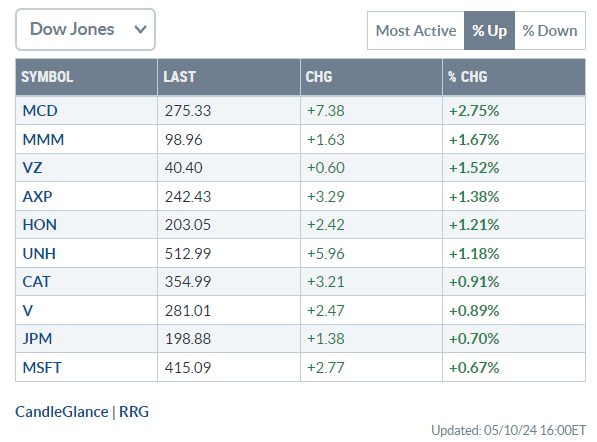 Il Dow Jones ha incrementato la sua serie positiva a otto giorni con un aumento dello 0,3%, con un aumento del 2,2% per la settimana.