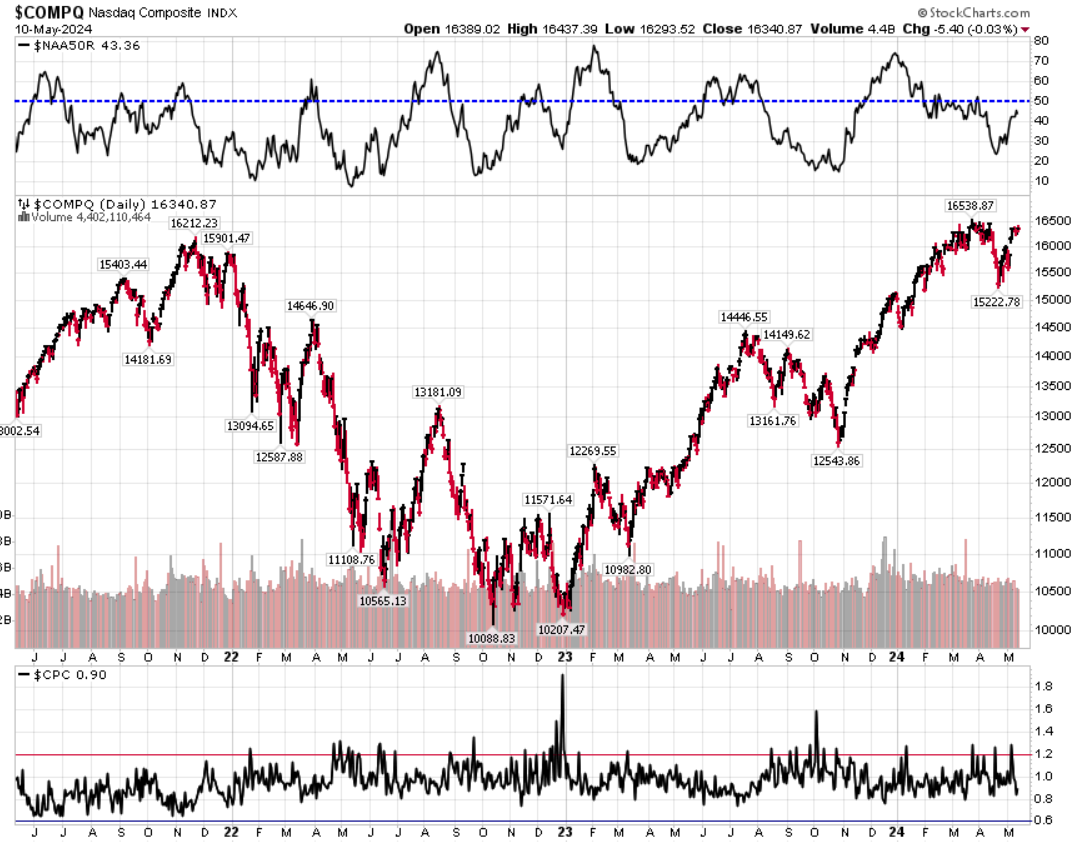 Il Nasdaq ha chiuso praticamente piatto, con un solido aumento weekly dell’1,1%, il terzo rialzo consecutivo settimanale. L’indice tecnologico si è allontanato dalla SMA50D ed è ora in rialzo dell’8,9% nel 2024.
