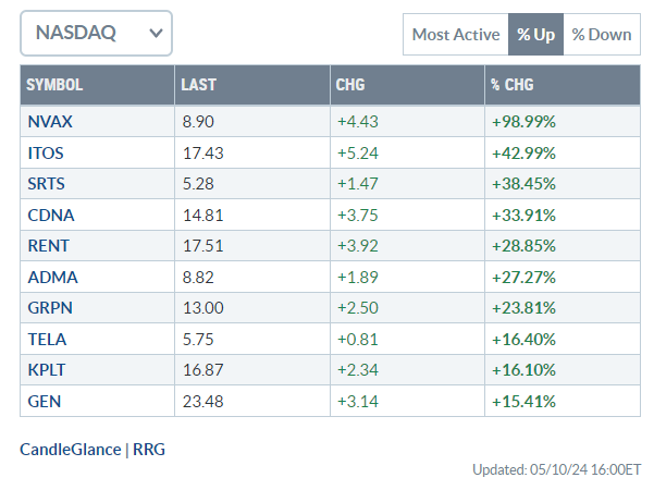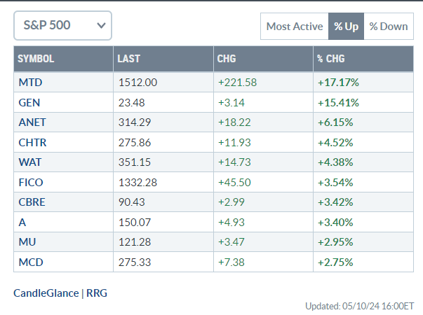 Analisi azioni: Top 10% Market Movers S&P500 10/05/2024