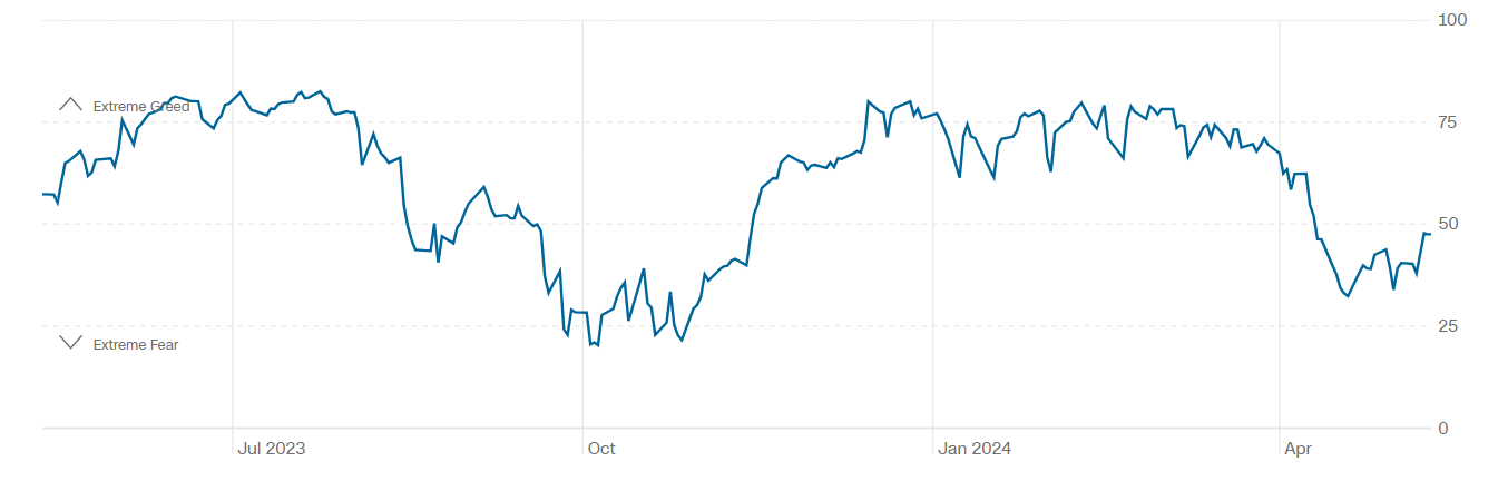 Il Fear&Greed Index sale a quota 48, indicando la neutralità come il sentiment prevalente. Una settimana fa il valore era pari a 40.